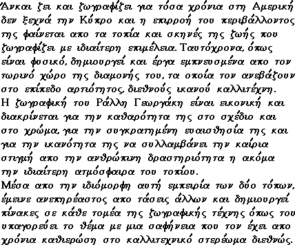 Even though he lives and paints for so many years in the USA he does not forget the influence from the Cyprus environment and this can be seen in many of his creations that portray the culture, life-style, topography and people of the island. Rallie has always been in the same unique sphere, seemingly unmindful and obviously uninfluenced by the movements of the world and of the artists around him. Ever so close to man so as to perfect this vital communion and yet so far from him in his quest for experiencing, understanding and painting. In this realm of closeness and distance, using a medium of diligence, he is creating art that gives the perspective and truly possess, the experience and the love of the things he sees and knows. Rallie Georghakis is comfortable in all the spectrum, in the Art of painting and has created quite a few items in the sections of landscapes, seascapes, portraits with character, expression, still life scenes, scenes of life with movement and activity, nudes and so on. |