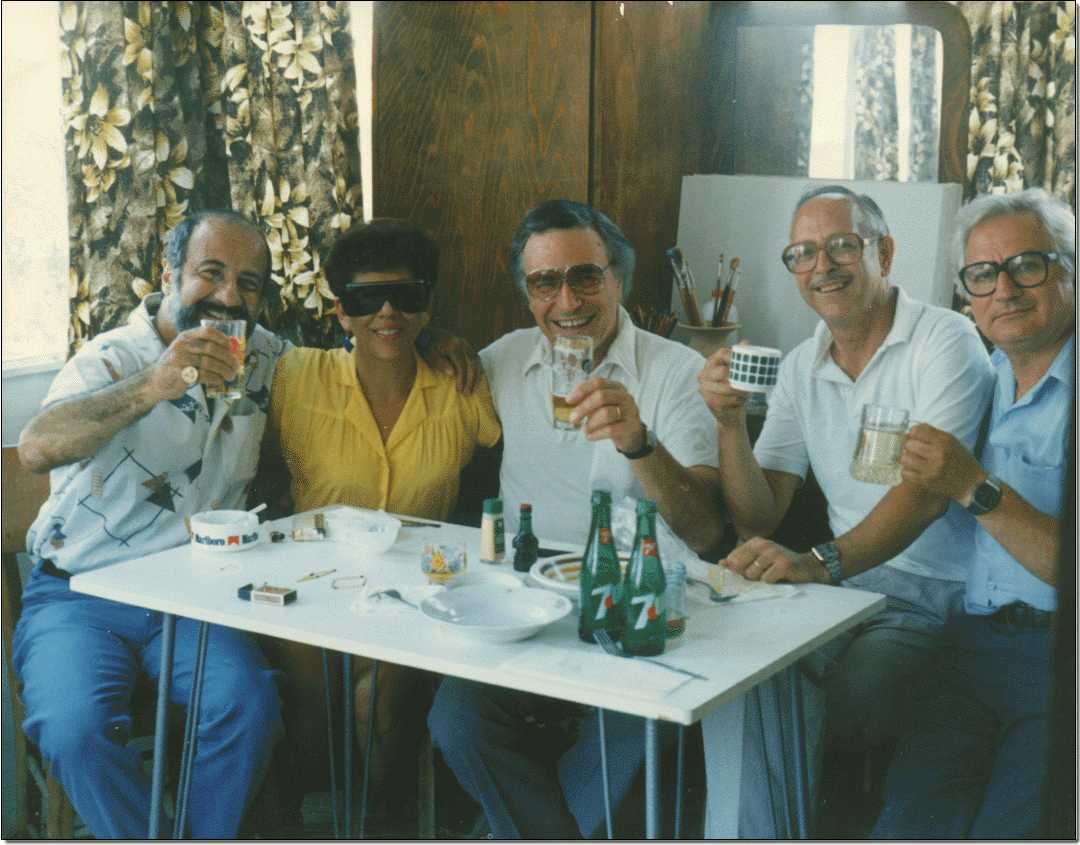 In my studio (1987) with Ninette Carder, Freddie Eleftheriades, Sam Giragosian and Ioulios Stavrinides |