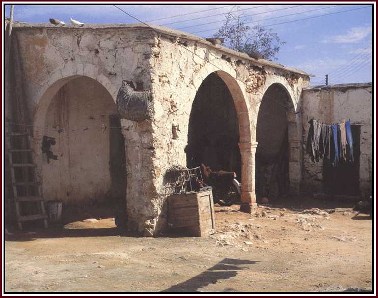 Here was a house typical of the 'kokkinochoria' (red villages) so called because of the very dark soil of the region which produces some of the best potatoes in Cyprus . The photograph was taken in 1989 . It represented a token remnant of the village that was before the explosive development that has taken place at Ayia Napa ... |