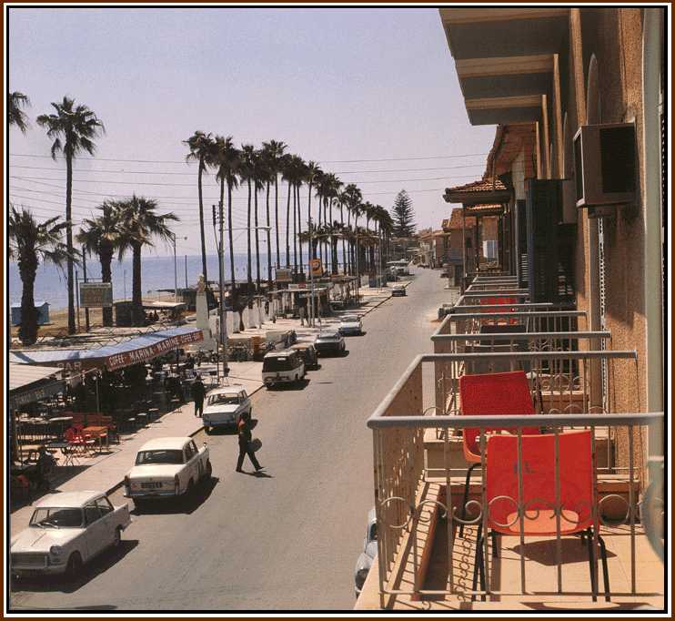 ' In the afternoon we passed cape Citti , whence we saw at ten miles distance the Marina of Larnaca , before which we anchored just at sunset , and were delighted with the neat appearance of its houses , with its verdure and its palm trees ... I soon forgot the fatigues of my voyage in a good bed . ' |
