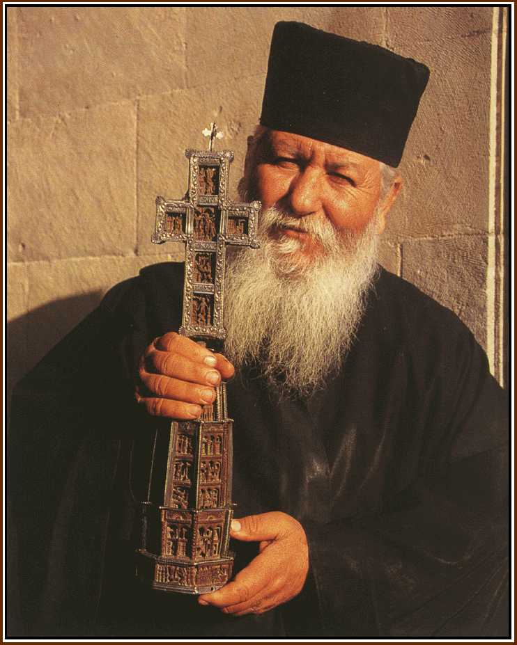 '...In that island is a very high mountain which is seen from the sea, and on the mountain a renowned monastery of Black Monks called of the Holy Cross, and a church. Between two rocks hangs the cross of the good thief, to whom our Lord said "To-day shalt thou be with Me in Paradise". It is held in great and devout veneration, and a vast multitude visit it. It is called the mountain of the Cross; it is fifteen miles from the sea, and a good day's journey from Famagusta. To this monastery of the Black Monks of the Holy Cross I went on my return from Nicosia. I arrived there with devotion and reverence, and saw and touched that blessed wood, which is held in reverence by all, and seafaring men in storms at sea invoke the blessed Cross of Cyprus.' |