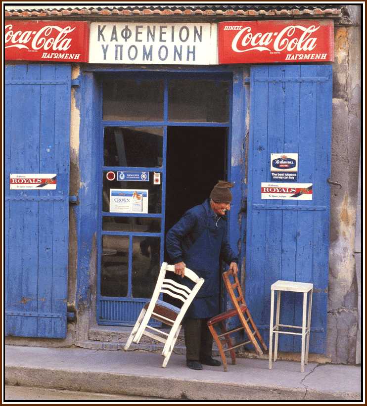 Does the name ' Ipomoni ' (Patience) of this modest cafe suggest that its elderly owner has all the patience necessary to serve his demanding clients or does it imply that the clients need the patience to cope with the service ?