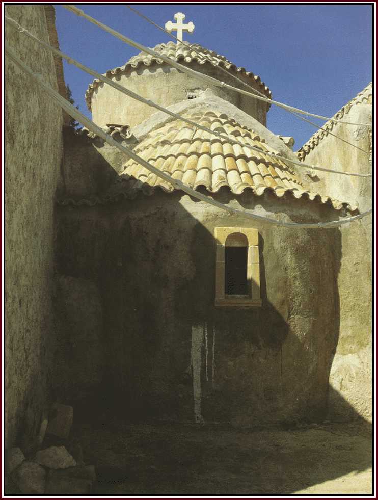 At the little Turkish village of Kivisili I came across the church of Panayia Eleousa girdled with strands of cotton thread in the customary manner in times of drought , when the villagers carry the icon of the virgin round the fields and pray for rain . |