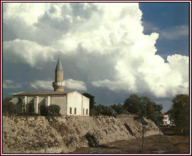 The mosque of the Bairaktar (the Standard-Bearer) marks the place where the first Turkish standard-bearer succeeded in scaling the Venetian walls . He was killed on the spot and buried where he fell . The city was captured on the 9th. of September 1570 . |
